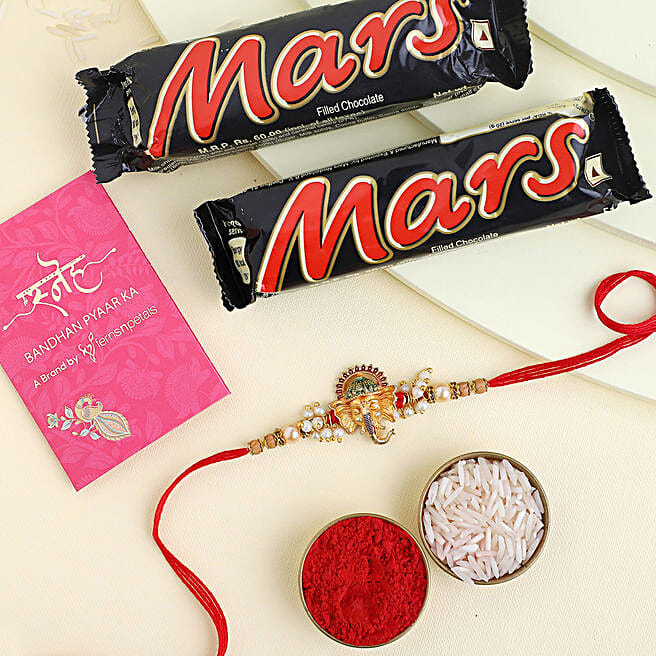 Gold Ganesha Rakhi &Mars Chocolate Bars