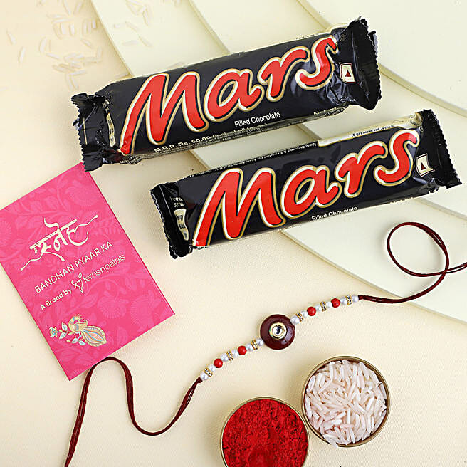 Kundan Rakhi Gift Set with Mars Chocolate