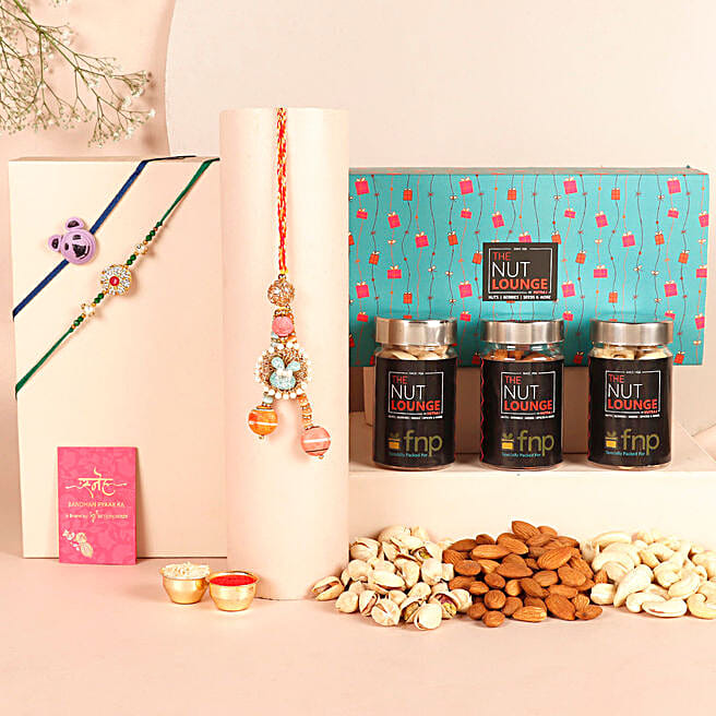 Kundan Rakhi Set & Quilling Bear Rakhi With Nutraj Dryfruits