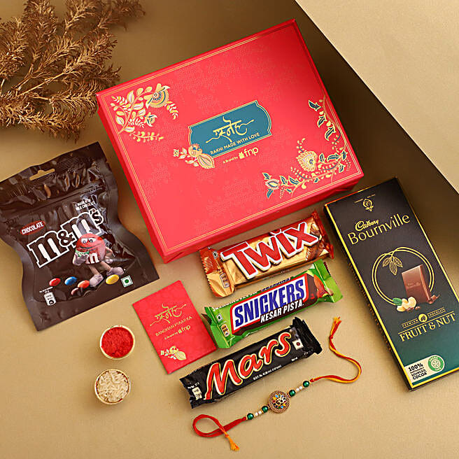 Meenakari Om Rakhi & Delectable Chocolate Hamper
