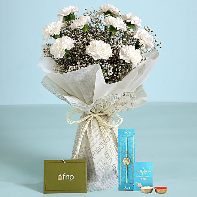 Meenakari Rakhi with Timeless Carnation Bouquet