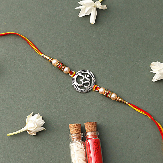 Silver Om & Pearl Rakhi