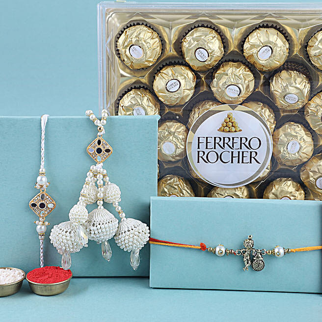 Sneh Pearl Family Rakhi Set with Ferrero Rocher