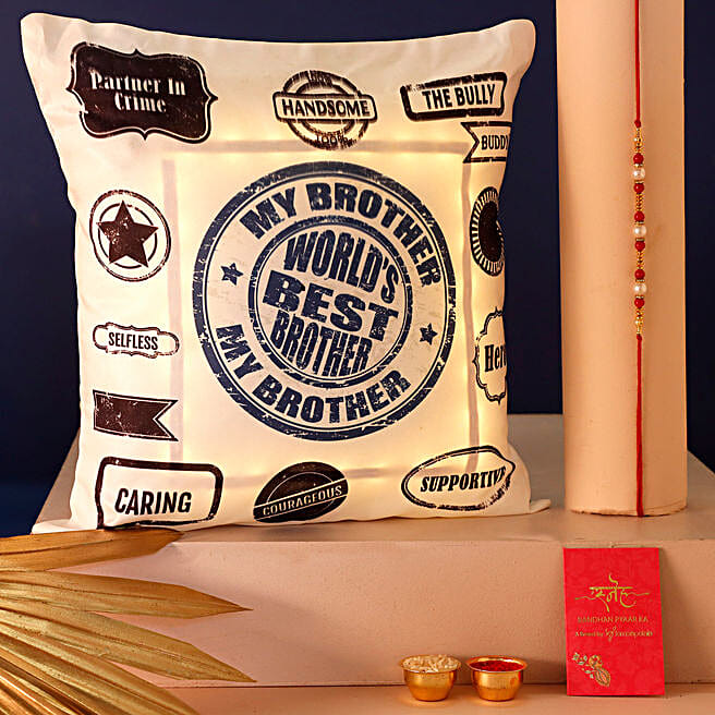Sneh Pearl N Beads Rakhi With Best Brother Cushion