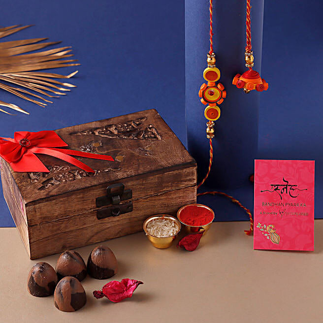 Shakkar Quilling Flower Bhaiya Bhabhi Rakhi Set Pralines Box