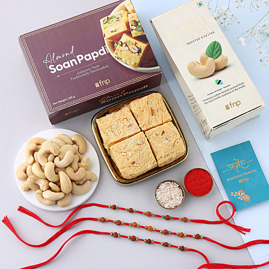 Rakhi Set of 3-Nuts and Soan Papdi Combo