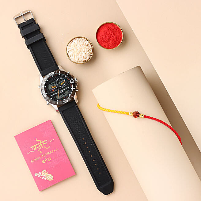 Rudraksh Rakhi & Fastrack Analog-Digital Men's Watch