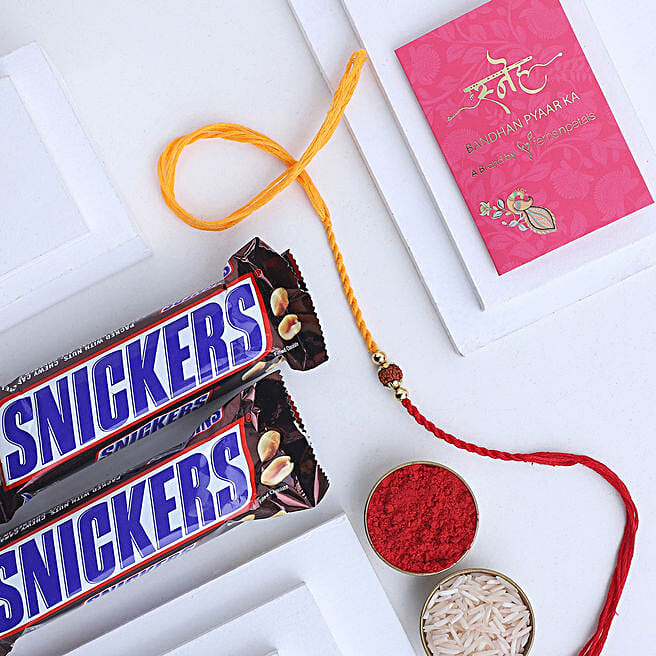 Rudraksha Mauli Rakhi & Snickers Chocolate