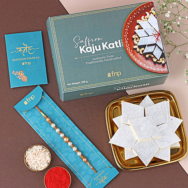 Serene Pearls Rakhi & Kaju Katli Box