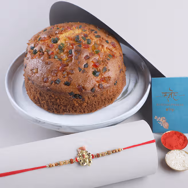 rudraksha bal ganesha rakh with Mix Fruit Dry Cake