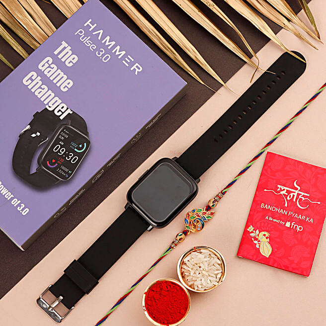 Shree Meenakari Rakhi & Hammer Pulse 3.0 Smartwatch