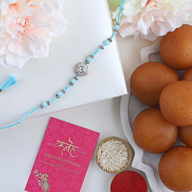 Stone-Studded Beads Rakhi with Gulab Jamun