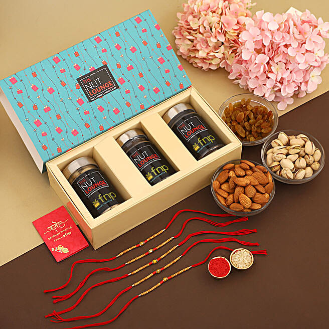 Wooden Beads Rakhi Set & Nutraj Dryfruits