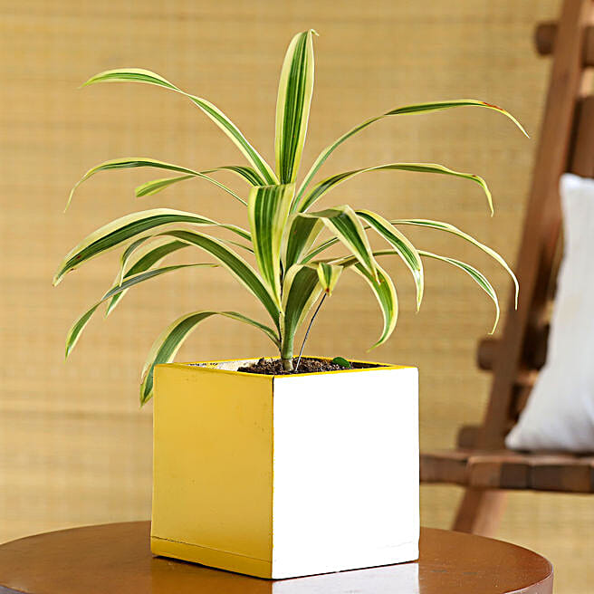 Song Of India Plant In Yellow & White Wooden Pot