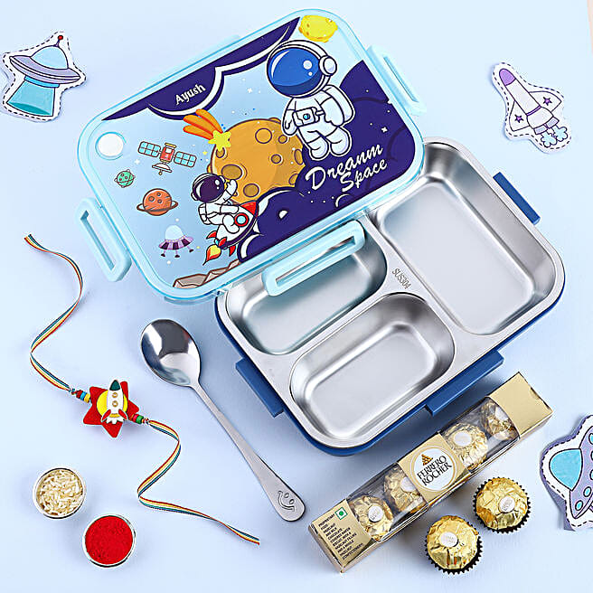 Space Theme Rakhi & Personalised Tiffin With Treats