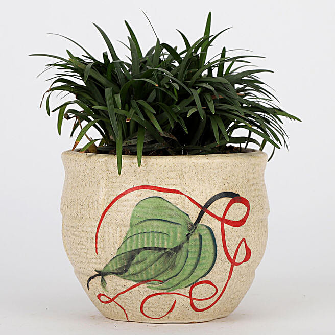 Splendid China Grass In Printed Ceramic Pot