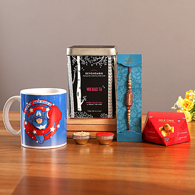 Striking Capsule Rakhi and Wild Black Tea Hamper