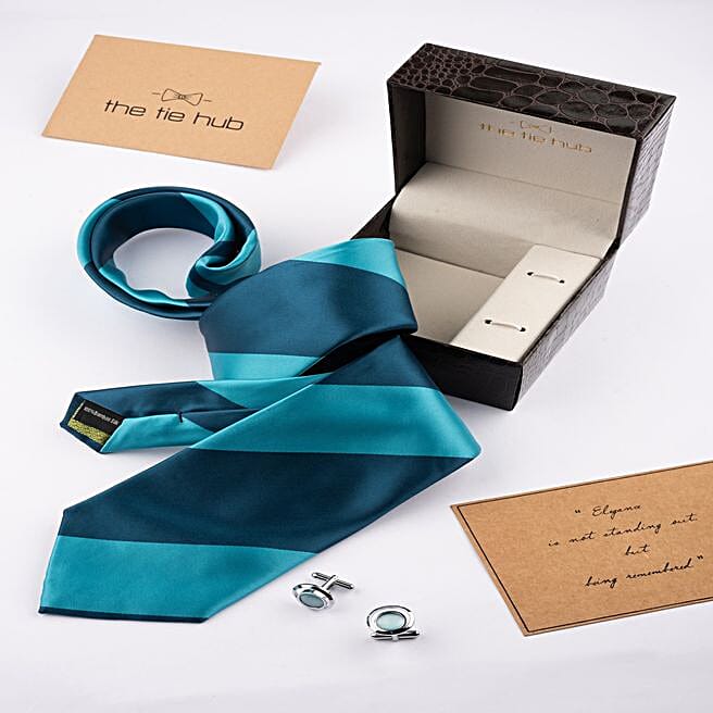 Stripe Design Teal Tie & Cufflinks Gift Set