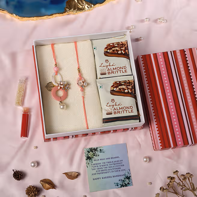 Studded Beauty Bhaiya Bhabhi Rakhi & Almond Brittles