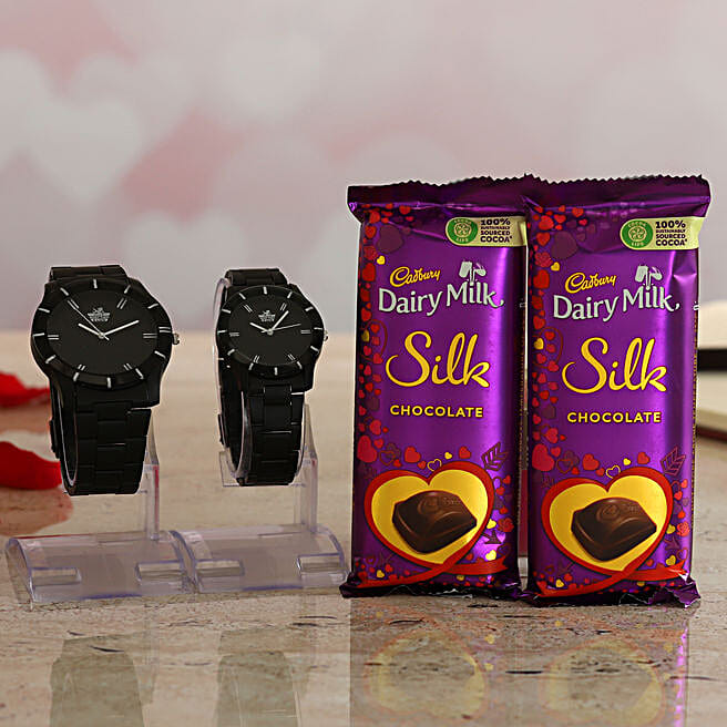 Stunning Couple Watch Combo & Dairy Milk Silk