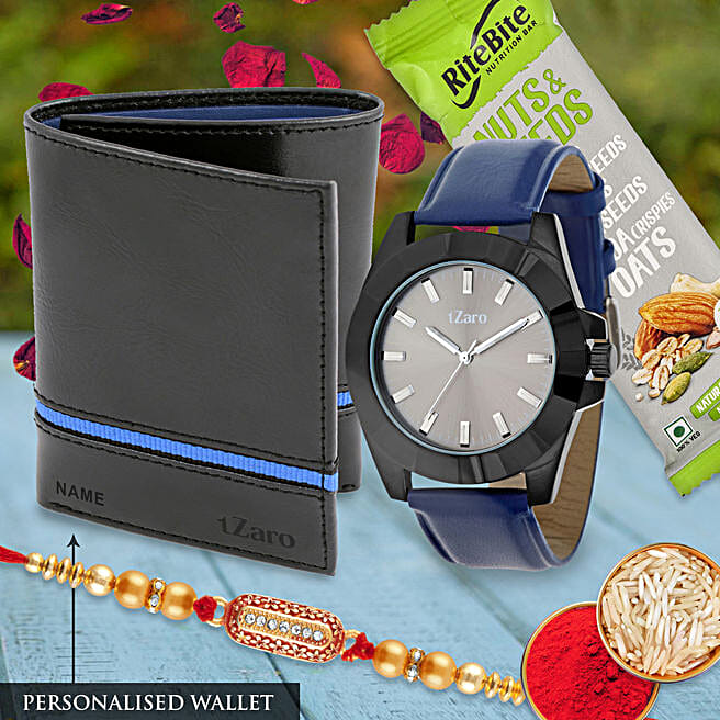 Stunning Rakhi Hamper With Genuine Leather Wallet & Watch
