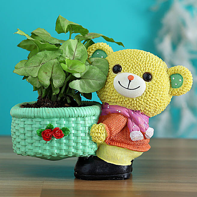 Syngonium Plant In Yellow Bear Basket Ceramic Pot