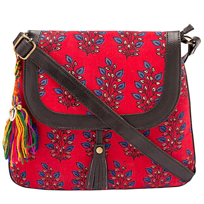 Tassel Detail Printed Sling Bag