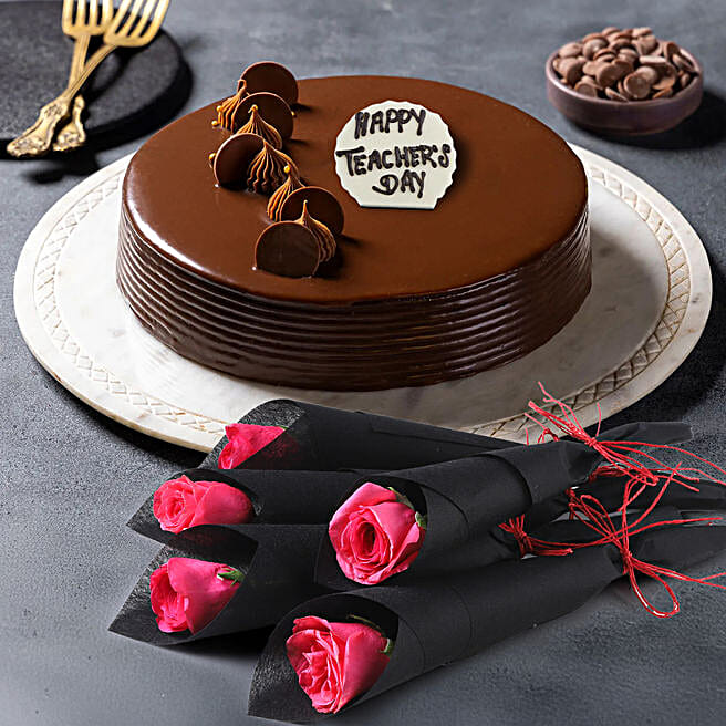 Teachers Day Truffle Cake with 5 Roses : 1 Kg