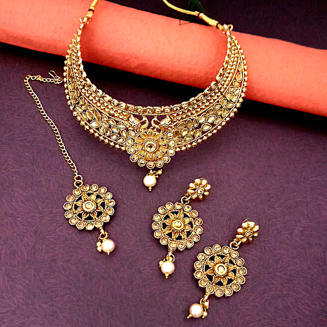Traditional Choker Necklace Set With Maang Tikka