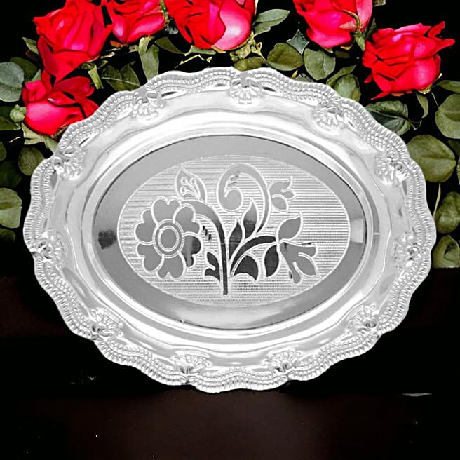 Traditional Diwali Floral Silver Thali