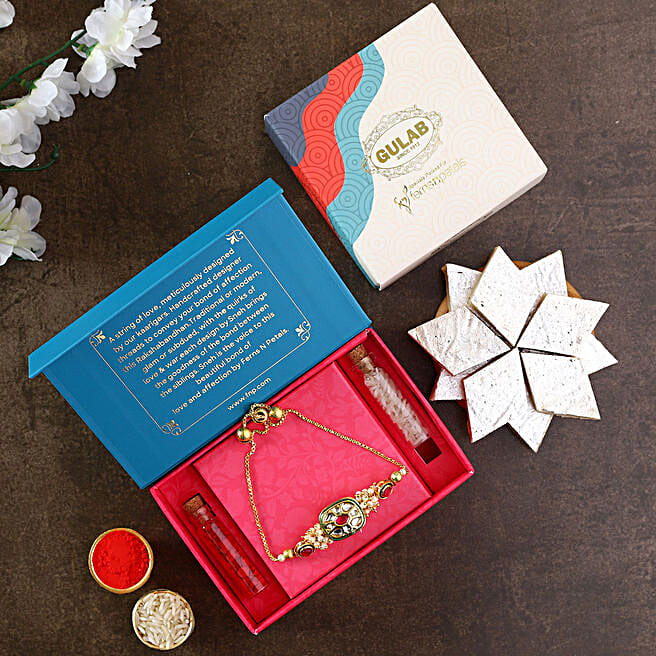 Traditional Kundan Lumba Rakhi and Kaju Katli