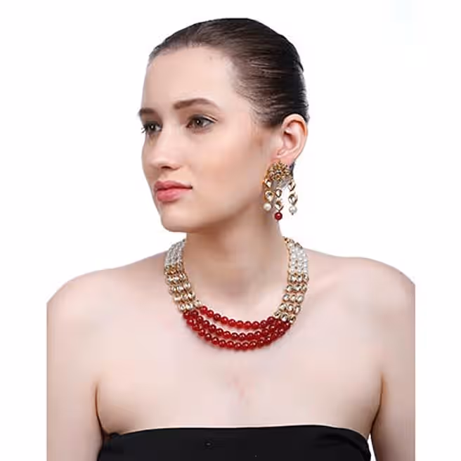Trendsetter Kundan Necklace Set Gold & Maroon