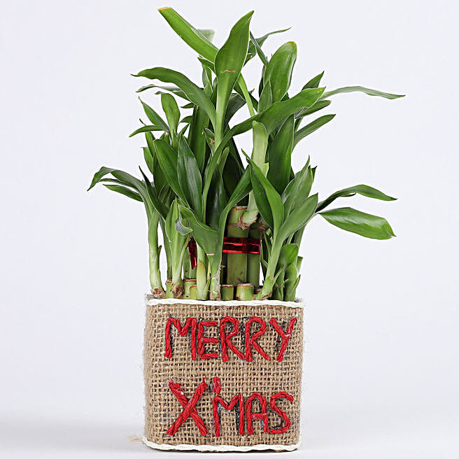 Two Layer Lucky Bamboo Plant in Merry Xmas Glass Vase