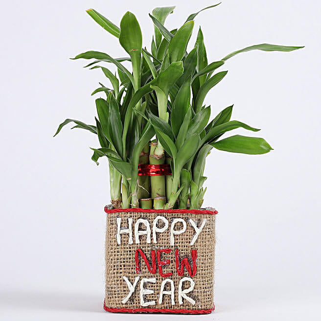 Two Layer Lucky Bamboo Plant in New Year Glass Vase