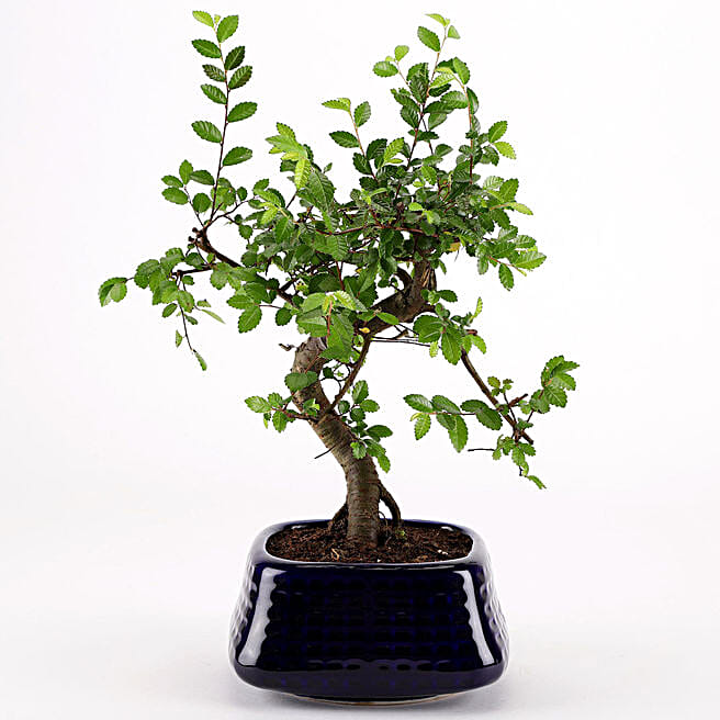 Ulmus Bonsai Plant in Blue Ceramic Pot
