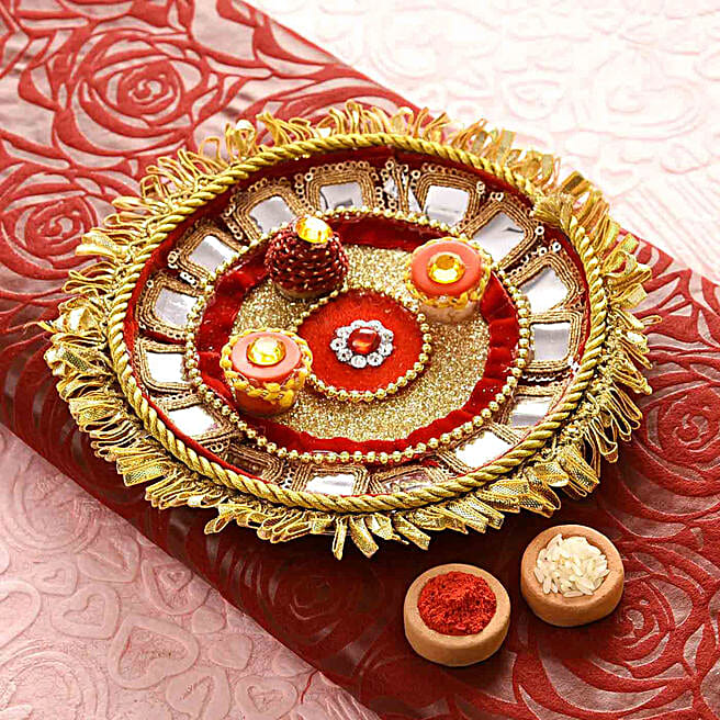 Velvety Red Bhaidooj Pooja Thali