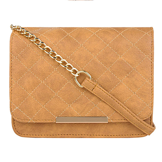 Vivinkaa Leatherette Quilt Embroidered Sling Bag- Camel