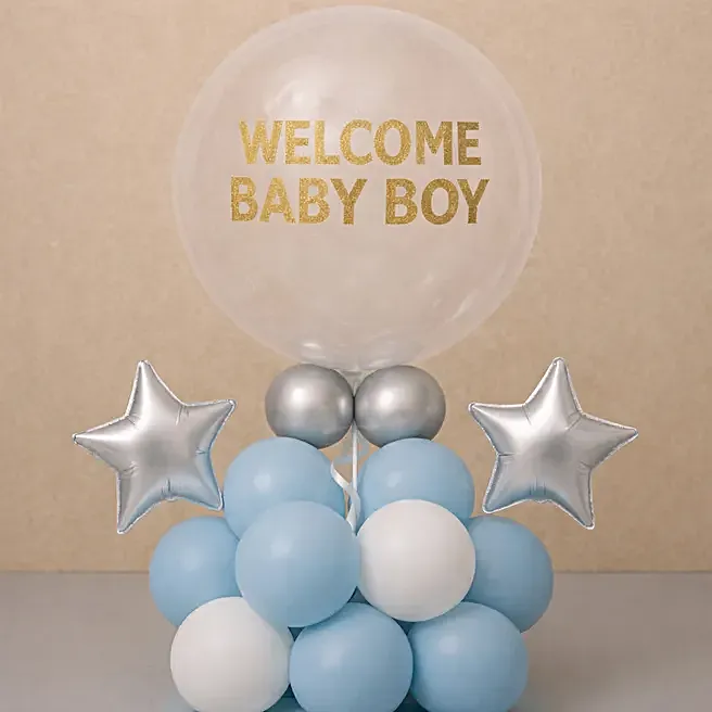 Welcome Baby Boy Ivory Blue Balloon Display