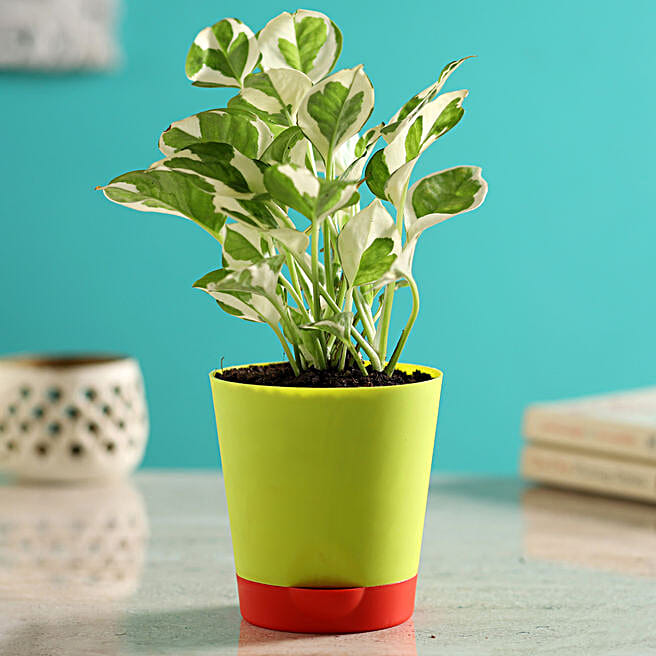 White Pothos Plant In Self-Watering Green Pot
