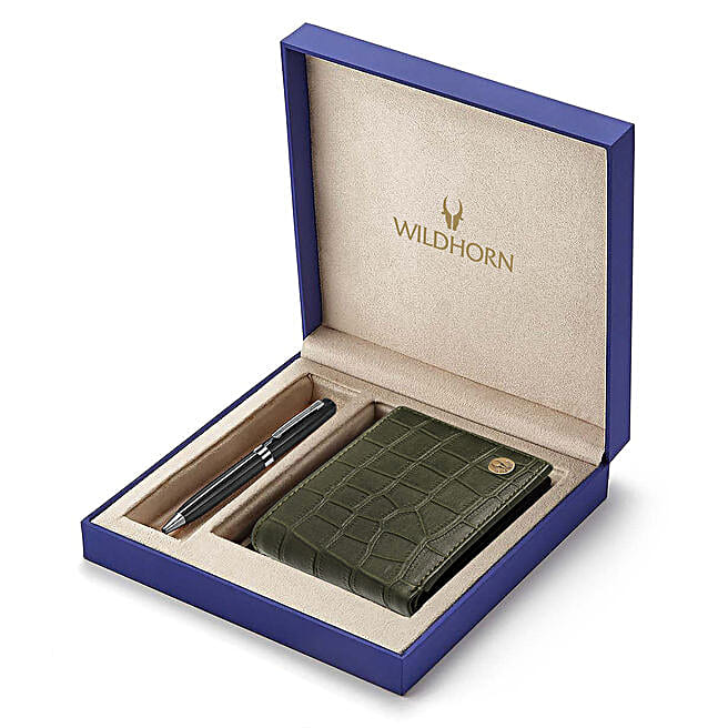 WildHorn RFID Protected Textured Mens Wallet and Pen