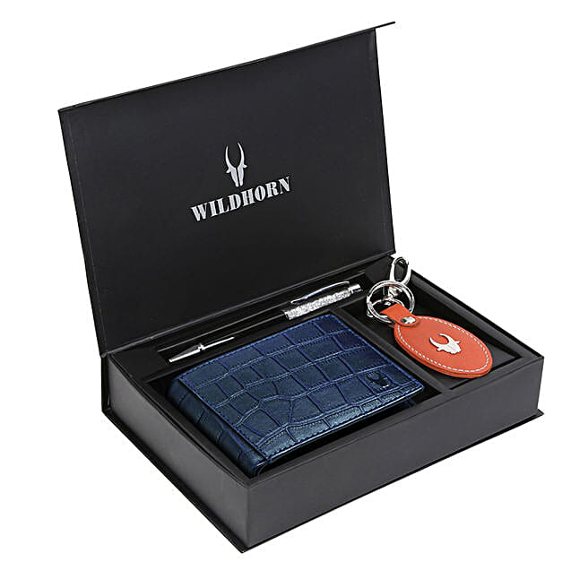 WildHorn Stylish Mens Blue Wallet and Pen With Keychain