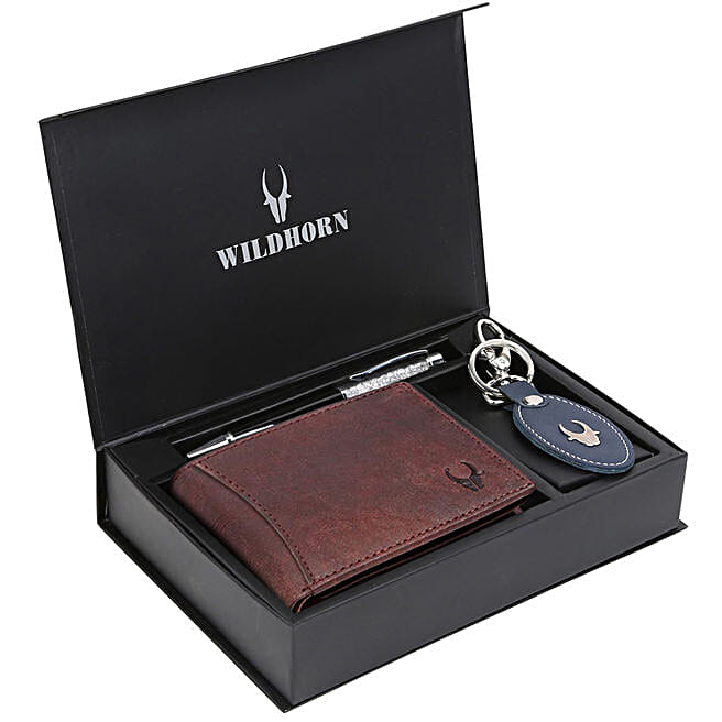 WildHorn Trendy Mens Brown Wallet and Pen With Keychain