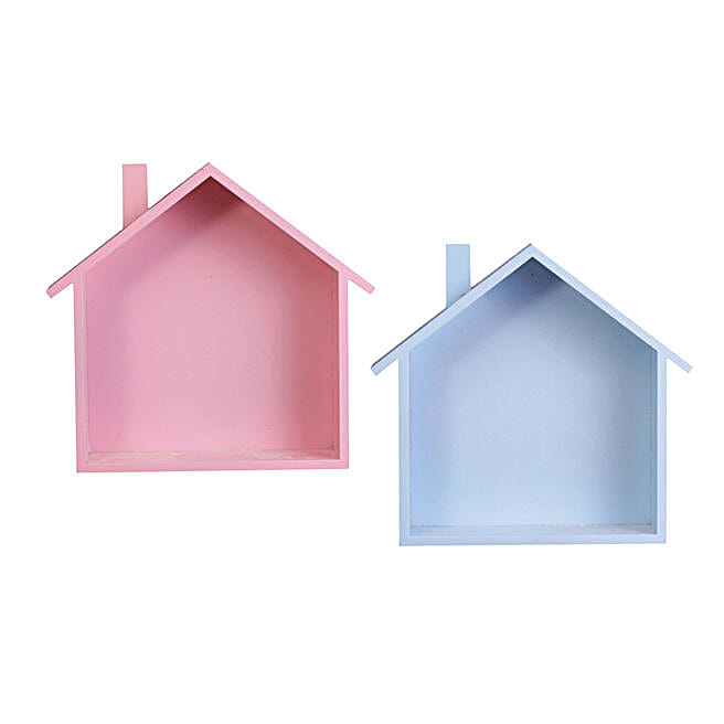 WISHTANK Small House Shape Wall Shelves Combo