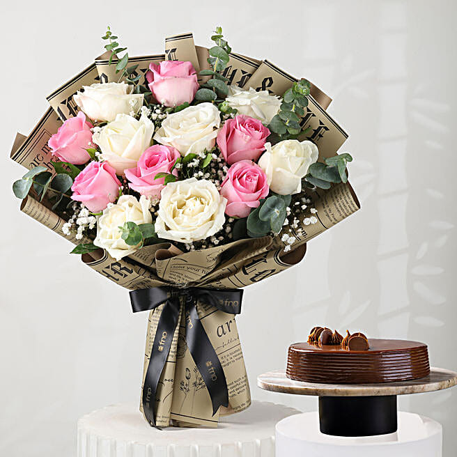 Women's Day Blush Floral N Truffle Cake Gift Set