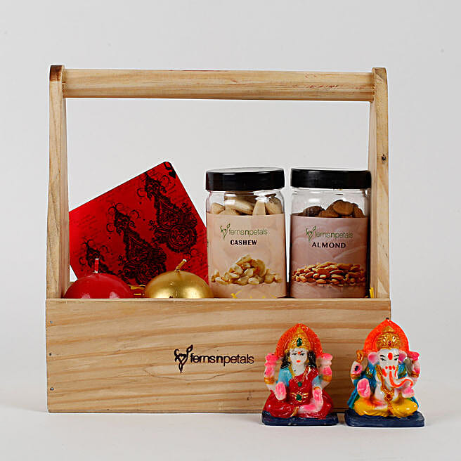 Wooden Basket of Diwali Gifts