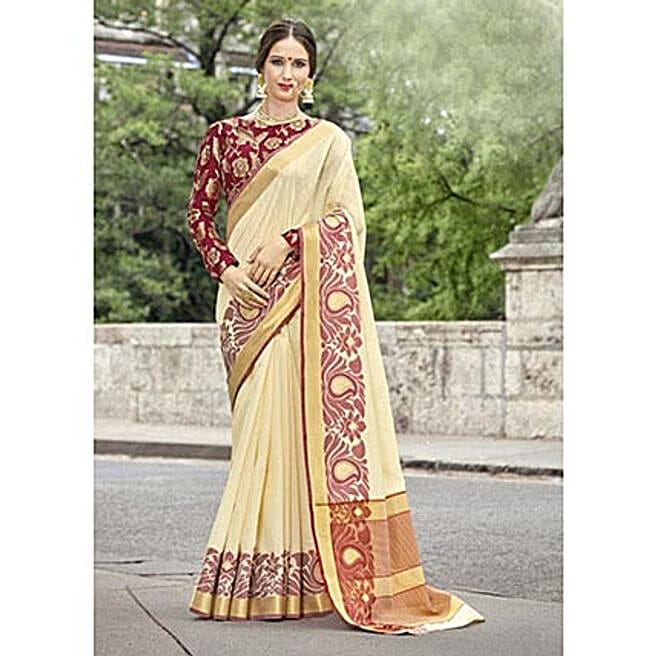 Woven Art Silk Off White Festival Wear Saree