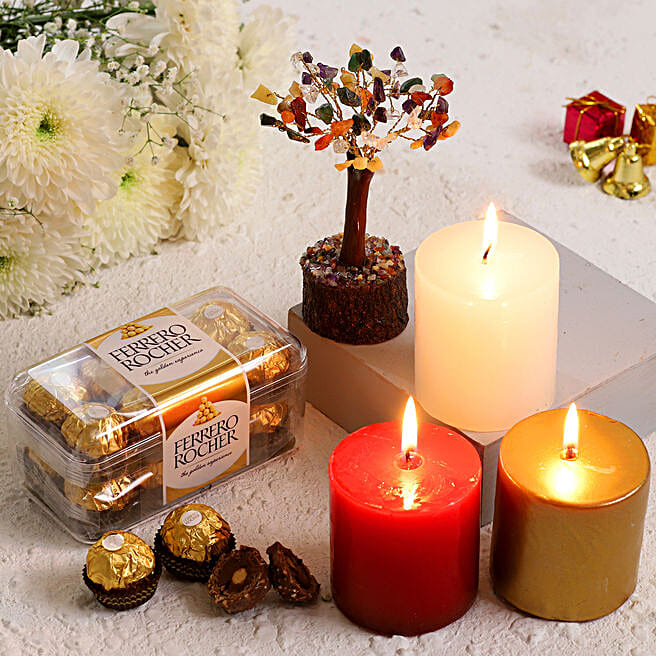 Xmas Special Candles With Colourful Wish Rocher