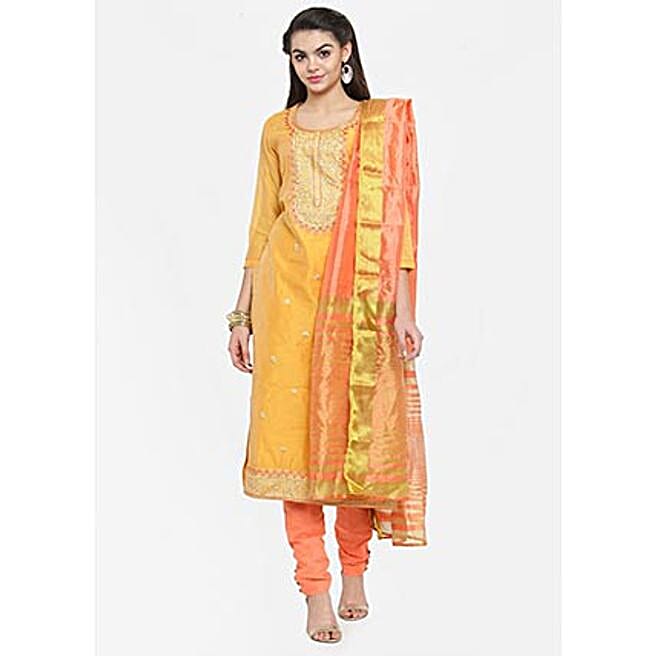 Yellow & Peach Unstitched Dress Material