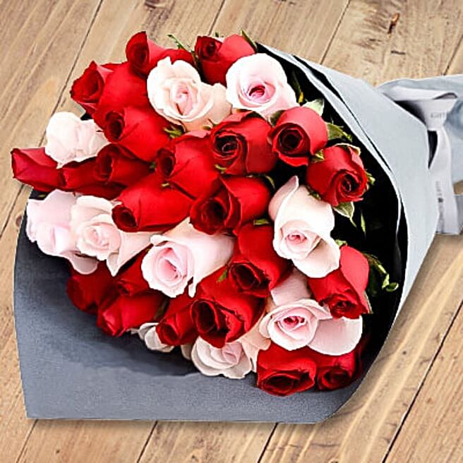 Breathtaking Red And Pink Roses Bouquet