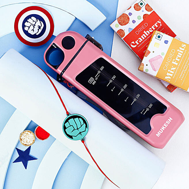 Hulk Fist Rakhi & Personalised Bottle With Delights